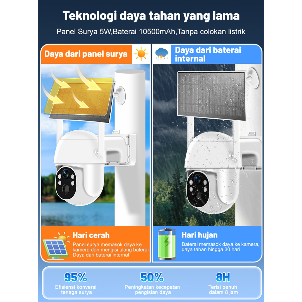 4G Solar CCTV Kamera Tenaga Surya 3MP Baterai 10500mAh Waterproof 360° PTZ Tanpa Beli Kartu SIM