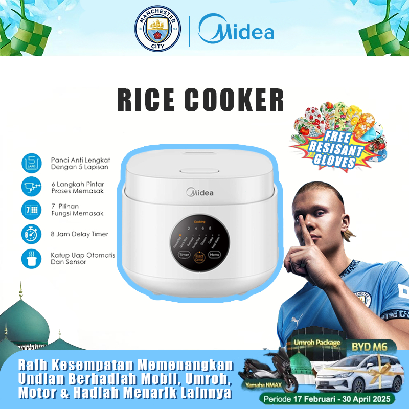 Midea Magic Com Mini 1L MB-FB30M161W - Rice Cooker Digital 7 Menu, Cocok untuk 1-3 Orang