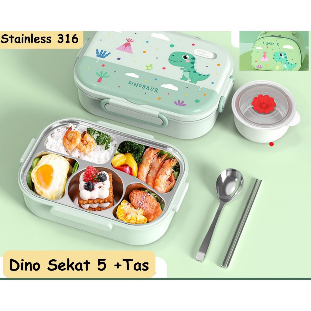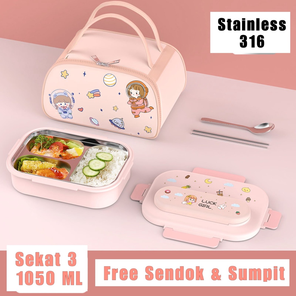 KOTAK MAKAN ANAK FREE TAS /LUNCH BOX KOTAK BEKAL BENTO ANAK STAINLESS ANTI TUMPAH TRAVELING JUMBO TAHAN PANAS