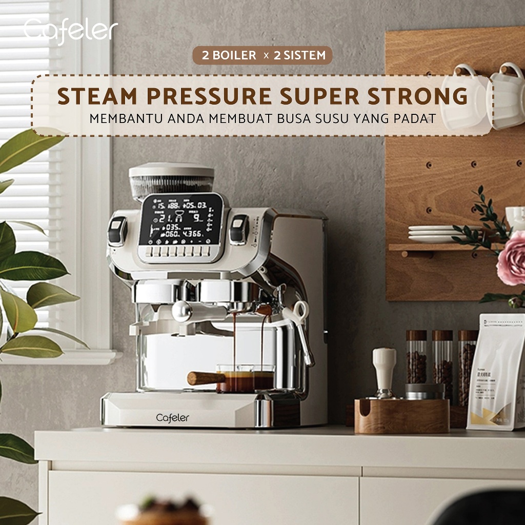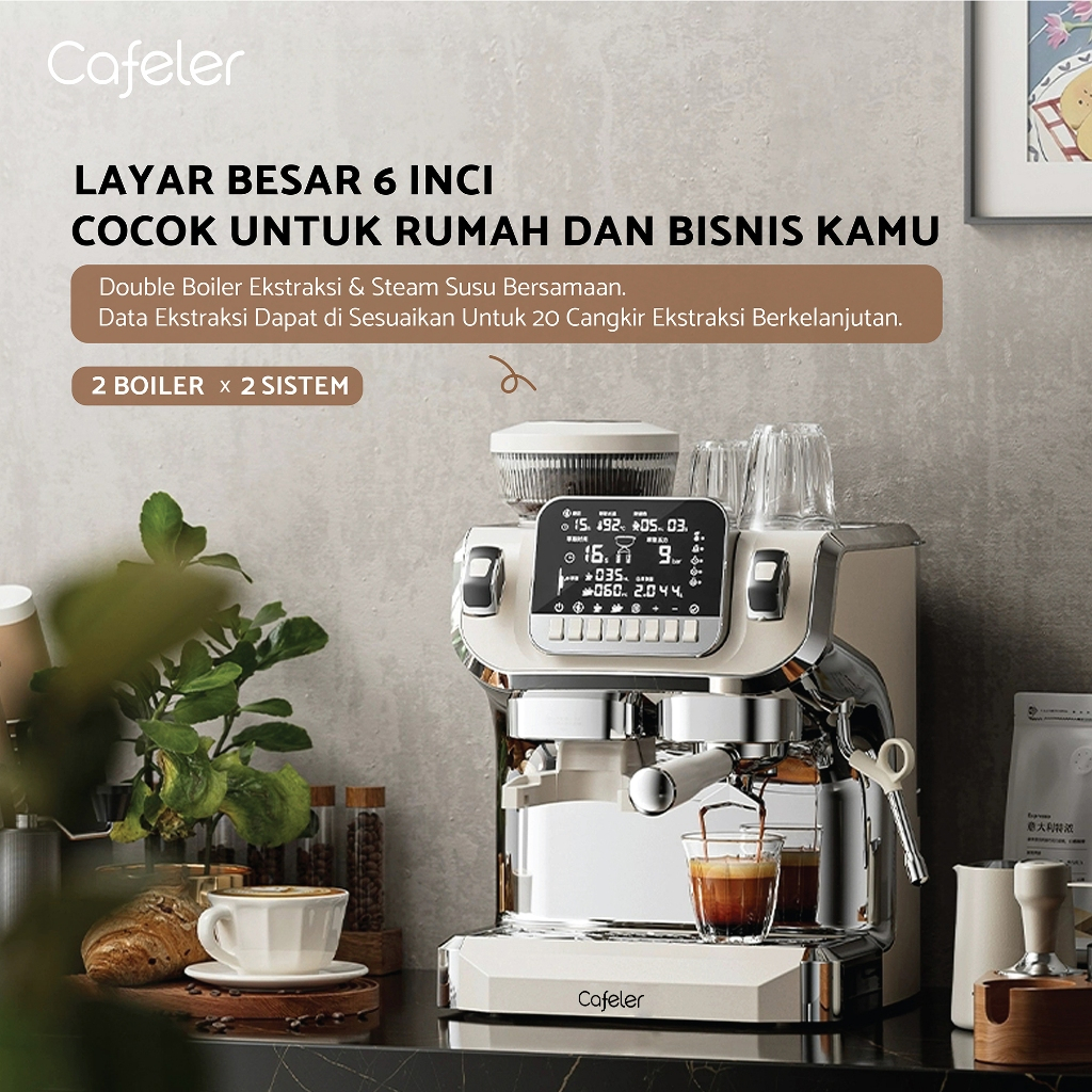 Cafeler Mesin Kopi Espresso 2 Heater Coffee Maker Smart Screen Kontrol