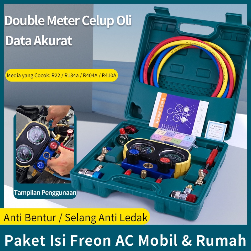 CHIGE Manifold Gauge Set Kuningan Mewah – BRASS DOUBLE MANIFOLD MULTI ONE COOL – Untuk R22 / R134A / R404A / R407C – AC Mobil / AC Rumah / Kulkas