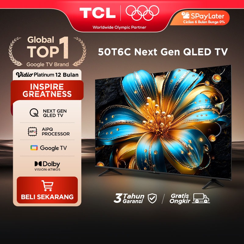 TCL Next Gen QLED 50 inch T6C - 4K Google TV - HVA Panel - HDR 10+ - Dolby Vision & Atmos - Google Assistant/Google Play/Netflix/Youtube
