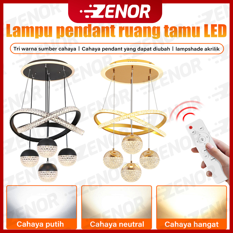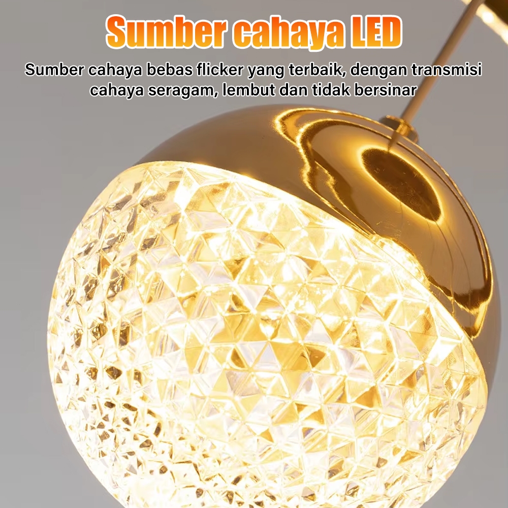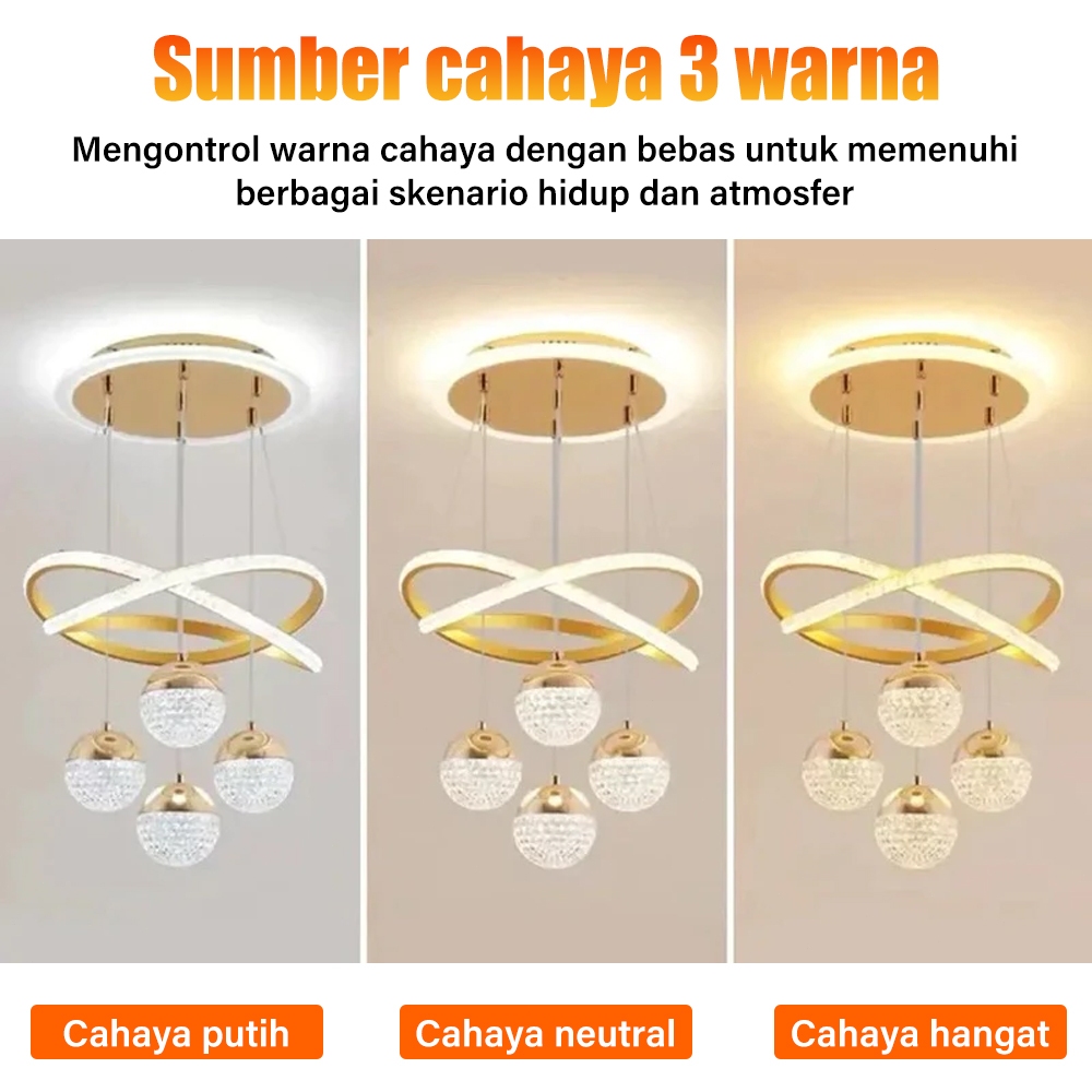 Lampu Gantung Dekoratif Minimalis Kristal LED 3 Warna - Mewah untuk Ruang Tamu, Ruang Makan, dan Restoran