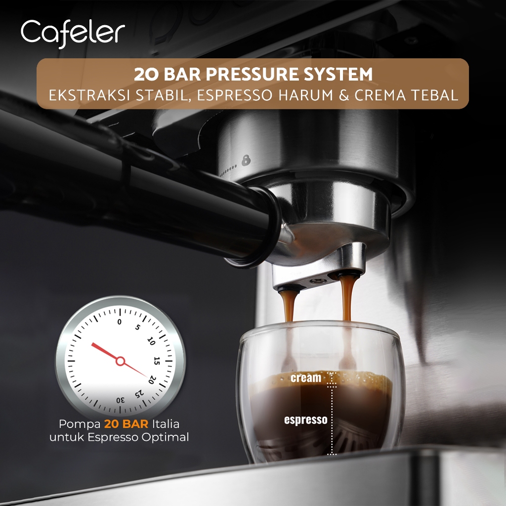 Cafeler Mesin Kopi Espresso 20 Bar Coffee Maker Stainless Steel Fast Heating Sistem