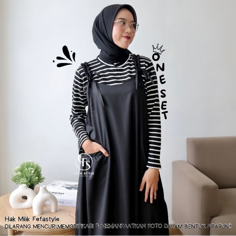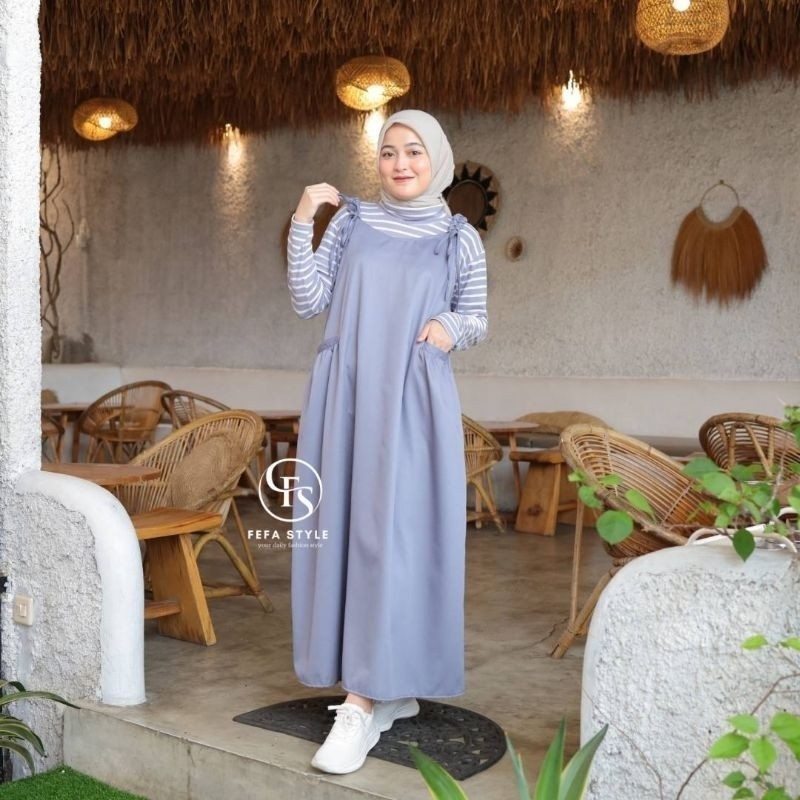 FEFA STYLE - ONE SET CALYA OVERALL - Overall dress wanita dengan inner knitt blaster MAZDA - gamis overall lucu