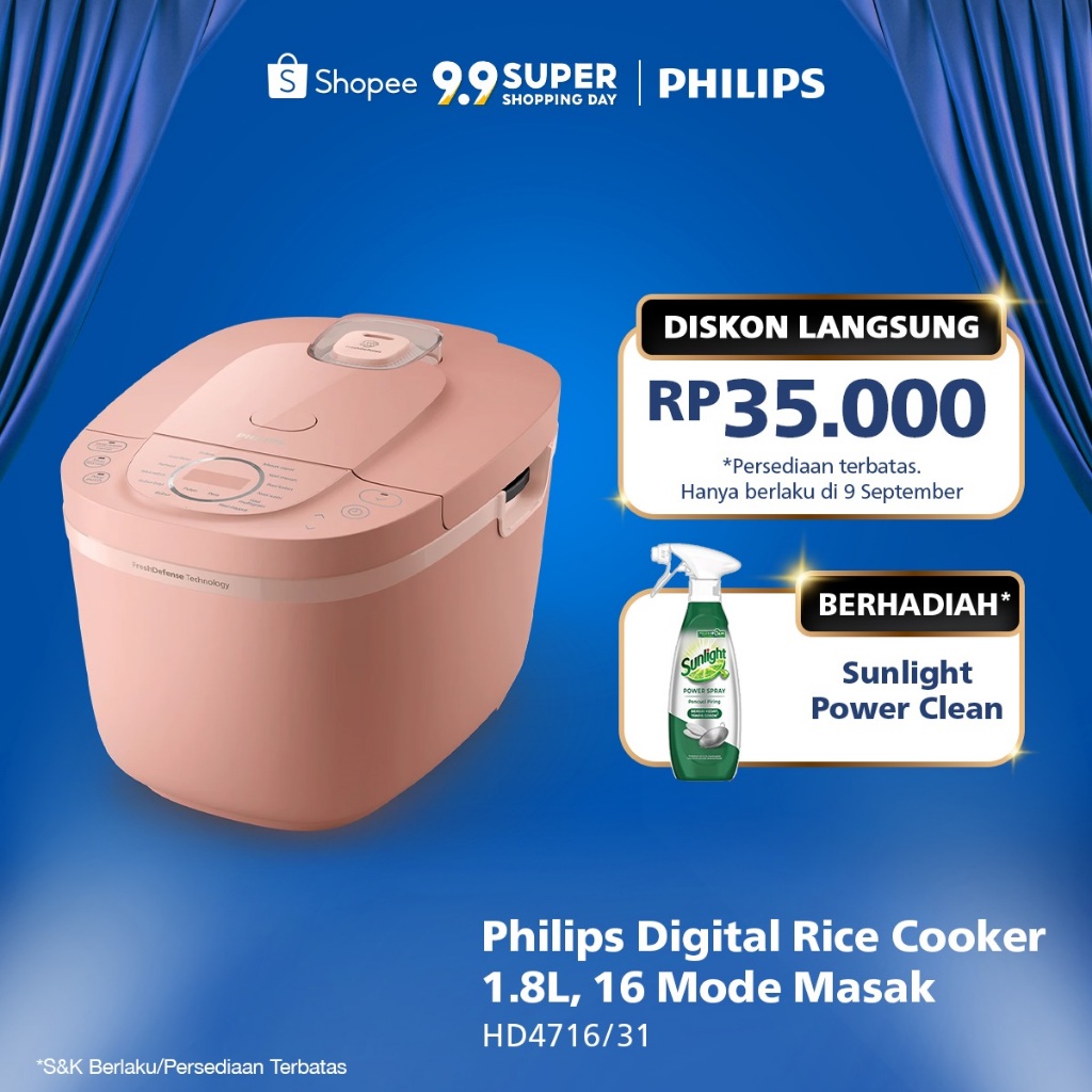 Philips Digital Rice Cooker Magicom 1.8 L - 3000 Digital Series HD4716/31 - Pink - 16 Menu Masak - Anti lengket - FreshDefense Technology