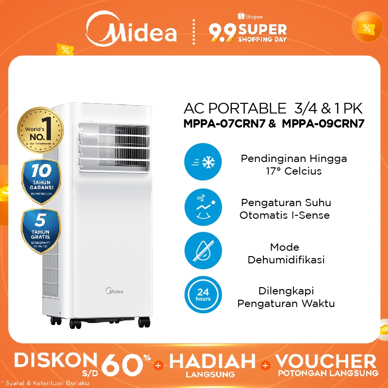 [TERLARIS & TERMURAH] Midea AC Portable MPPA-07/09CRN7 - Dehumidifying - Dingin Lebih Cepat - Fitur I Sense 3/4PK-1PK