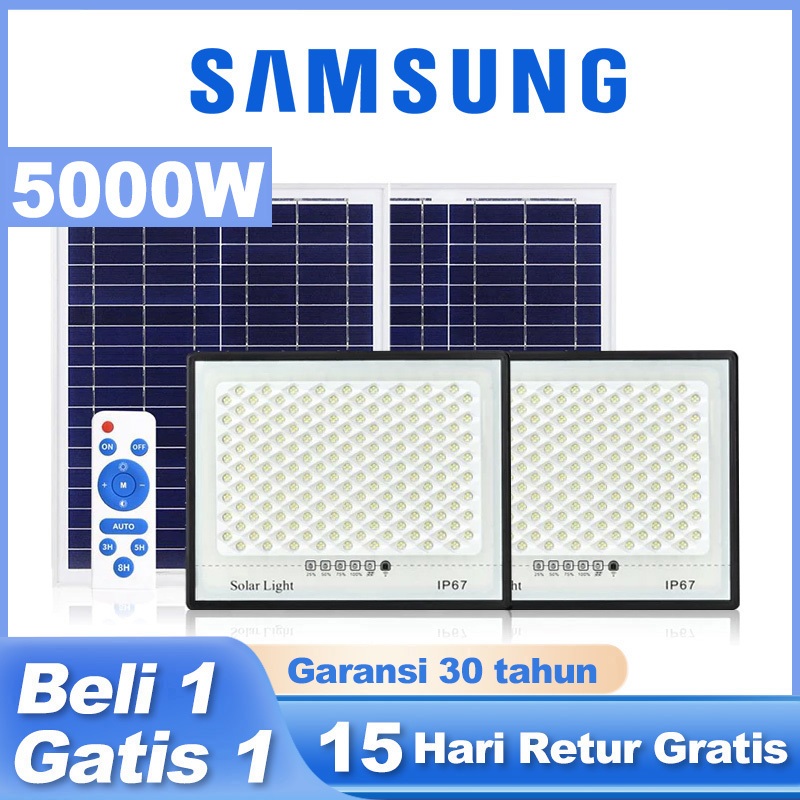 【Beli 1 Gatis 1 】 5000W Lampu tenaga surya Lampu Taman Luar Tahan Air IP67 otomatis outdoor With Power Display Timing Function