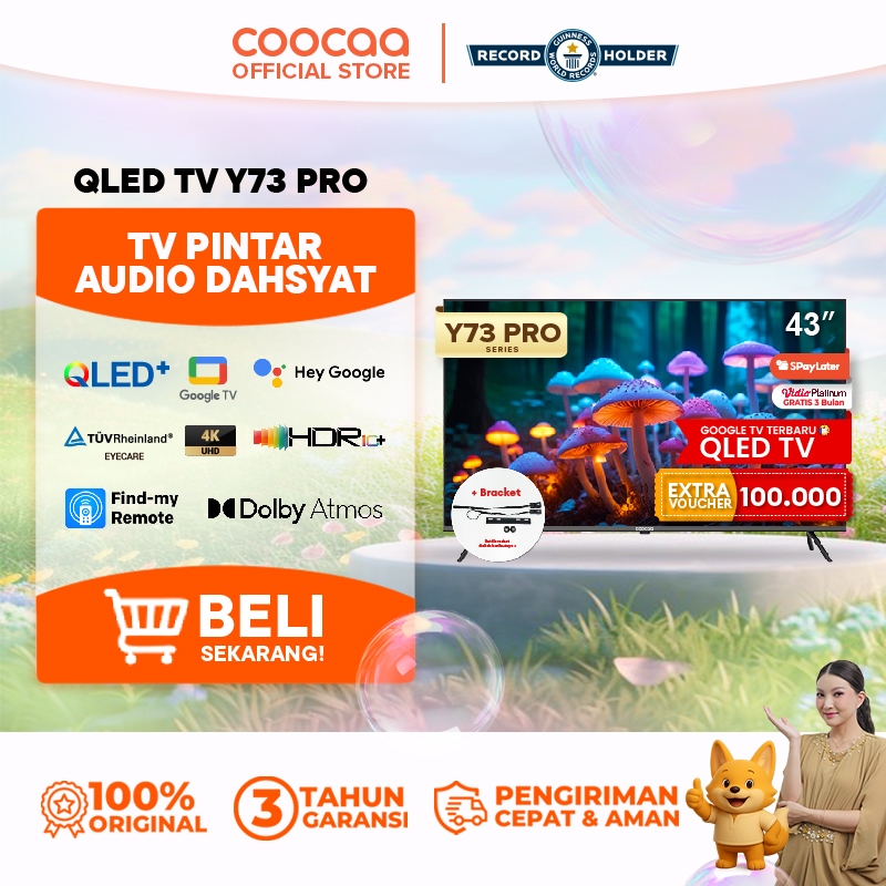 [BRACKET+] COOCAA TV 43 inch Y73 PRO - 4K QLED+ - Google TV - Flicker Free/Eye Care/Low Blue Light - Find My Remote - Dolby Vision