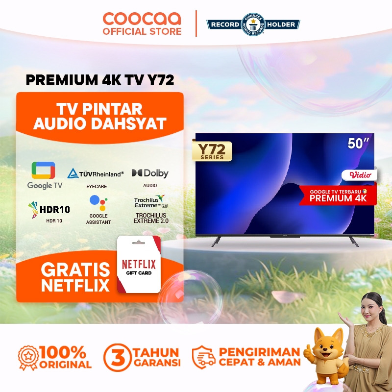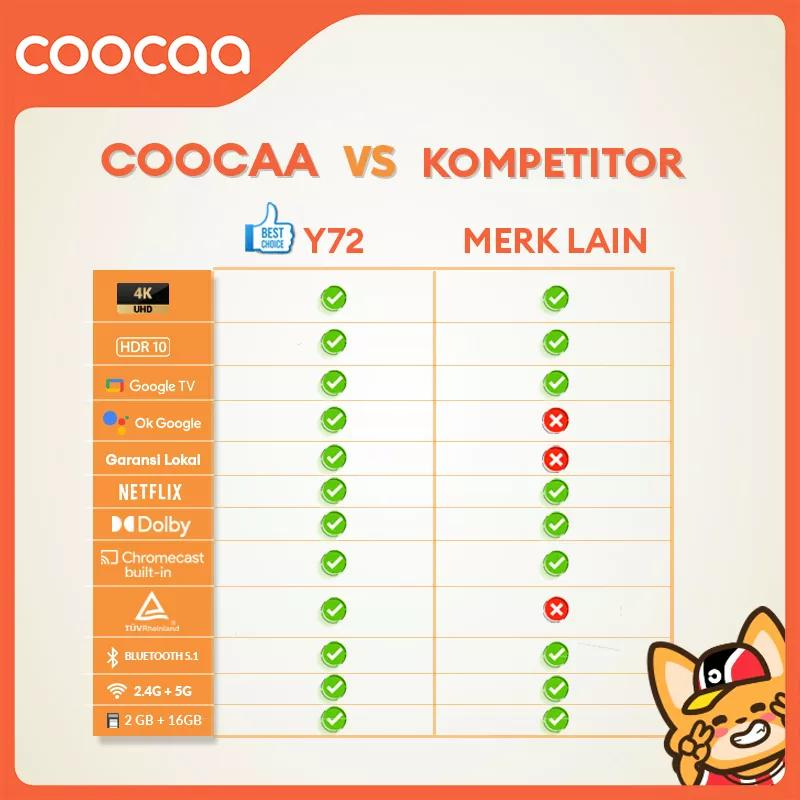COOCAA TV 50 inch Y72 - 4K GOOGLE TV - Smart TV - EYE CARE - Google Assistant - Dolby Audio - Low Blue Light - Flicker Free - Bluetooth