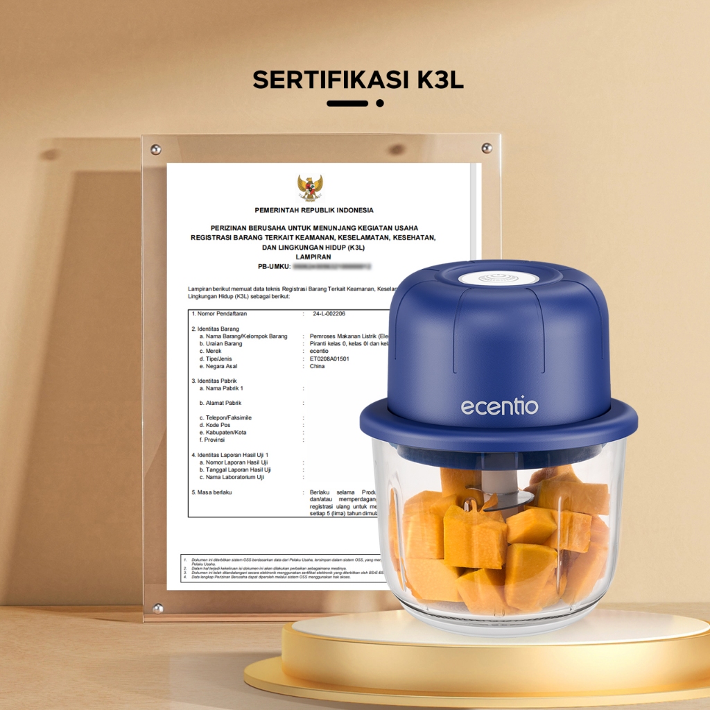 ecentio Mini Chopper Kaca Blender Portable 6 pisau 350ml Food Grade Penghalus Bawang Multifungsi Food Processor Elektrik Mini Chopper