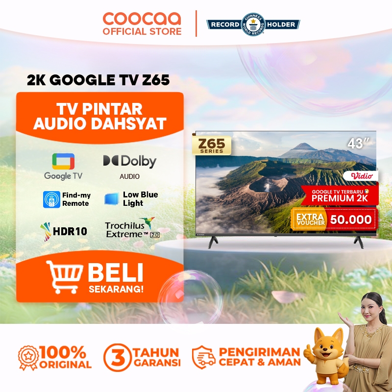 NEW COOCAA 43 inch Z65 - GOOGLE TV - 2K LED-TV - HDR 10 - Flicker Free - Low Blue Light - Eye Care - WIFI - USB/LAN (COOCAA 43Z65)