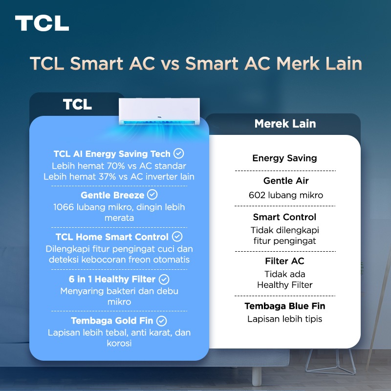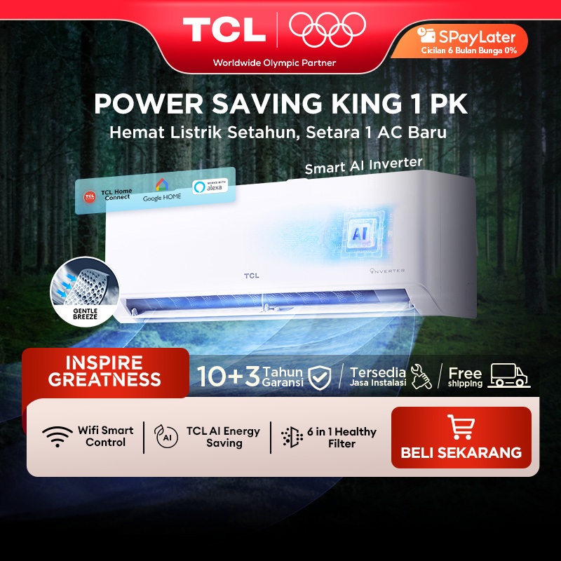 TCL AC AI Inverter Pro Wi-Fi 1 PK - Power Saving - Smart Home Control - Gentle Cool - Healthy Filter - Low Watt - Fast Cooling - Full Set Baru