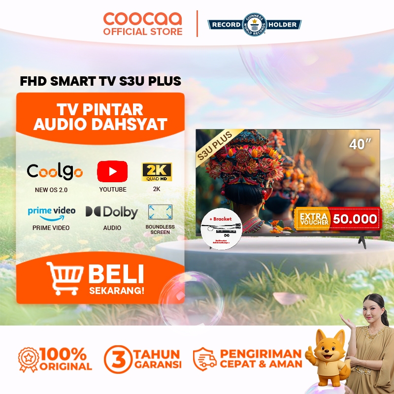 [+BRACKET] NEW COOCAA 40 inch S3U PLUS - Coolita 3.0 - Smart TV - Youtube/ Prime Video - Dolby Audio (COOCAA 40S3U Plus)