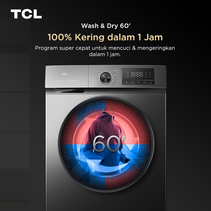 TCL Mesin Cuci Front Loading Washer Dryer 12kg C1 Series - 100 PERSEN Kering - Steam Wash - BLDC Motor - Kapasitas Besar - Air Wash