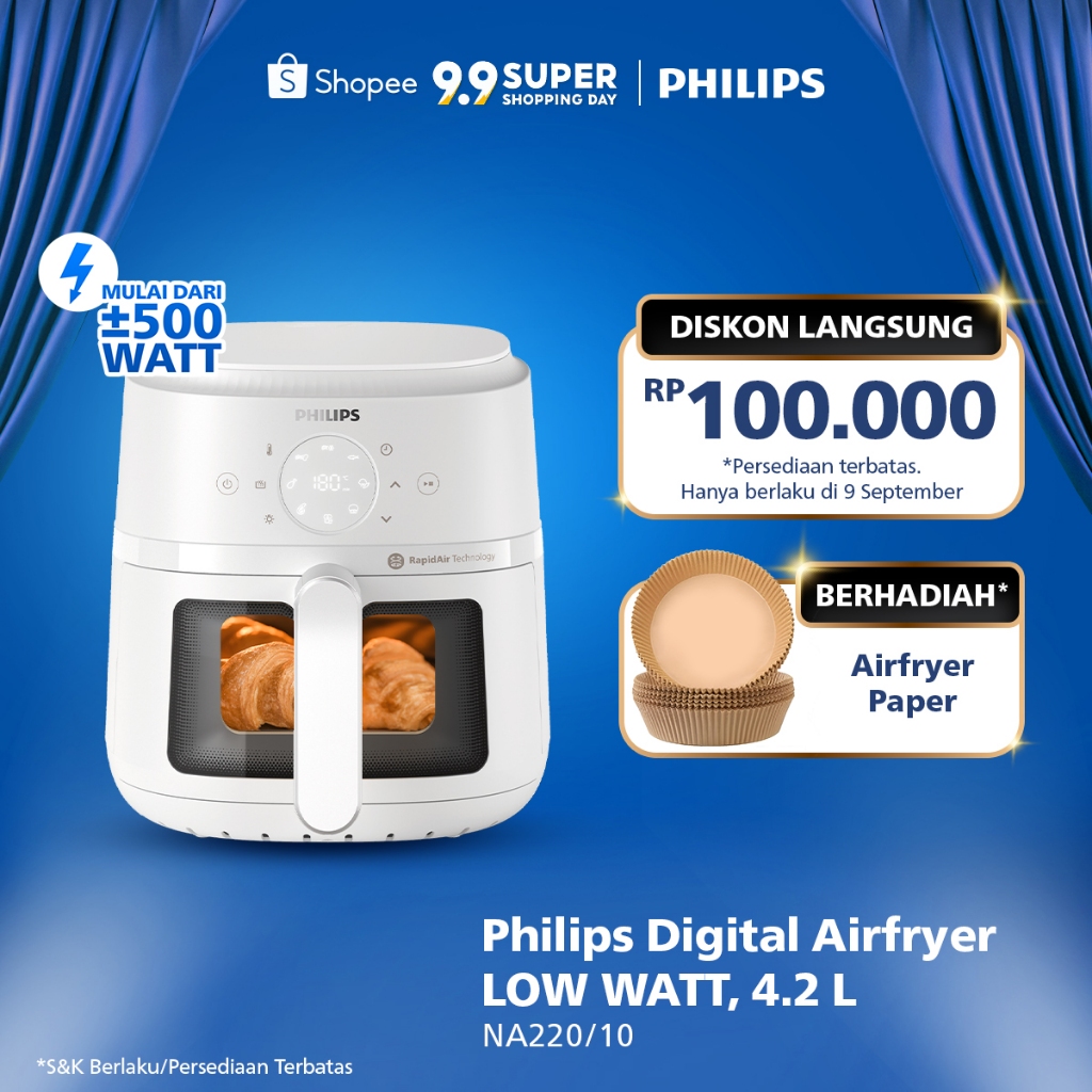 BARU PHILIPS Airfryer Low Watt 500W TRANSPARAN BEST CHOICE 4.2 L NA220/10 dengan jendela transparan, air fryer multifungsi digital