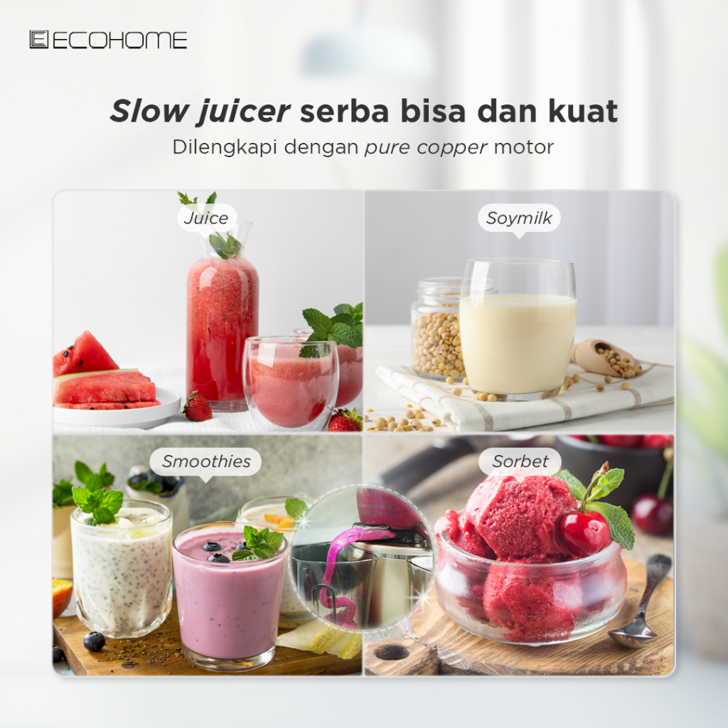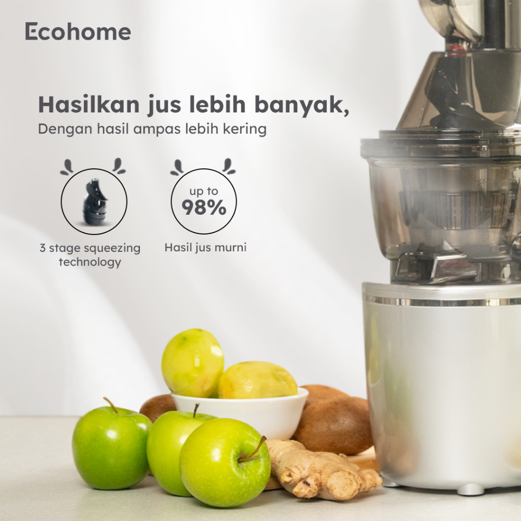 ECOHOME Slow Juicer Big Mouth ESJ999BM 55 RPM Pengekstrak Buah Low Watt Easy Clean Multifungsi