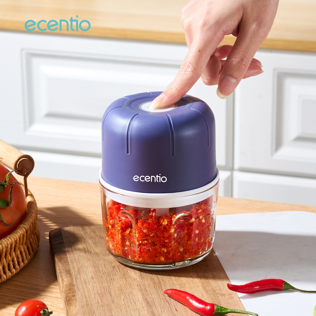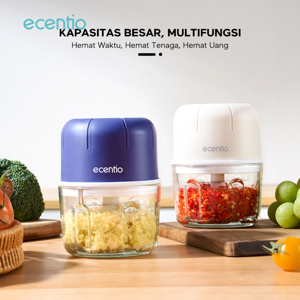 ecentio Kaca Mini Chopper 250ml Penghalus Bawang Multifungsi 6 Pisau Food Processor 10 Detik Halus BPA Free Chopper Mini Listrik