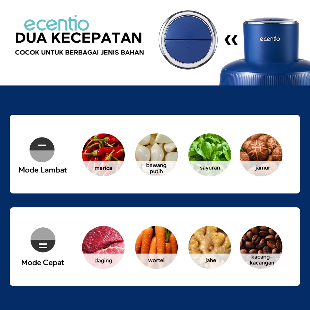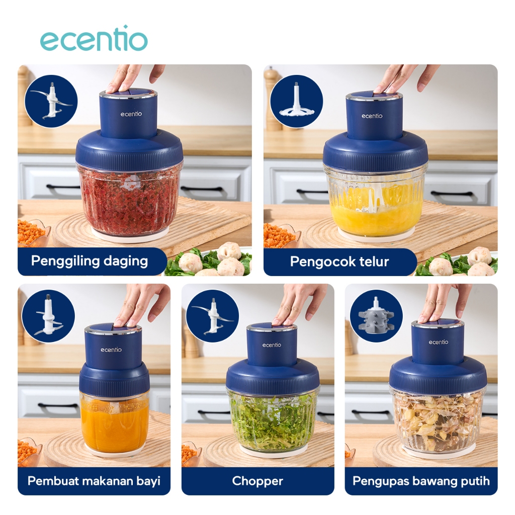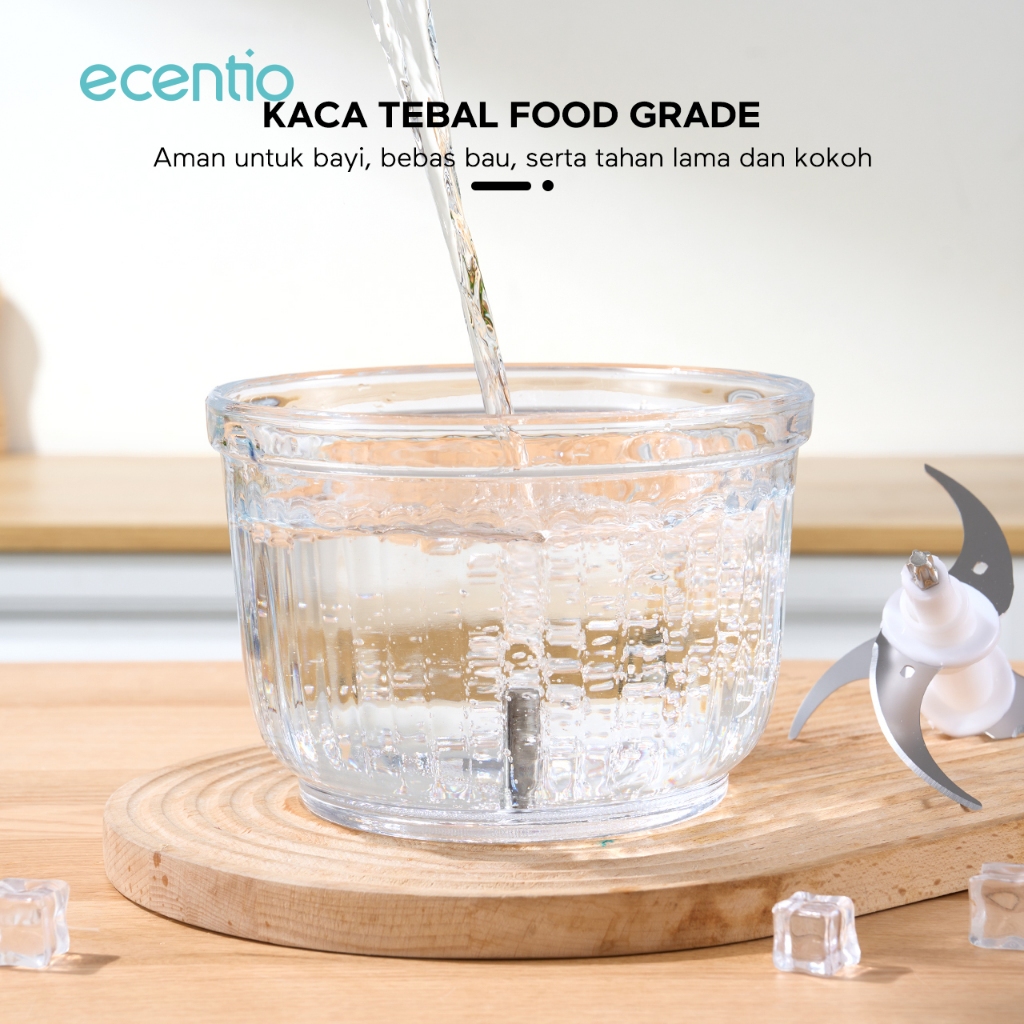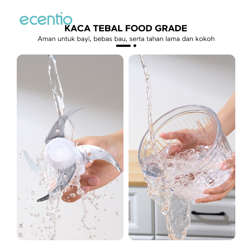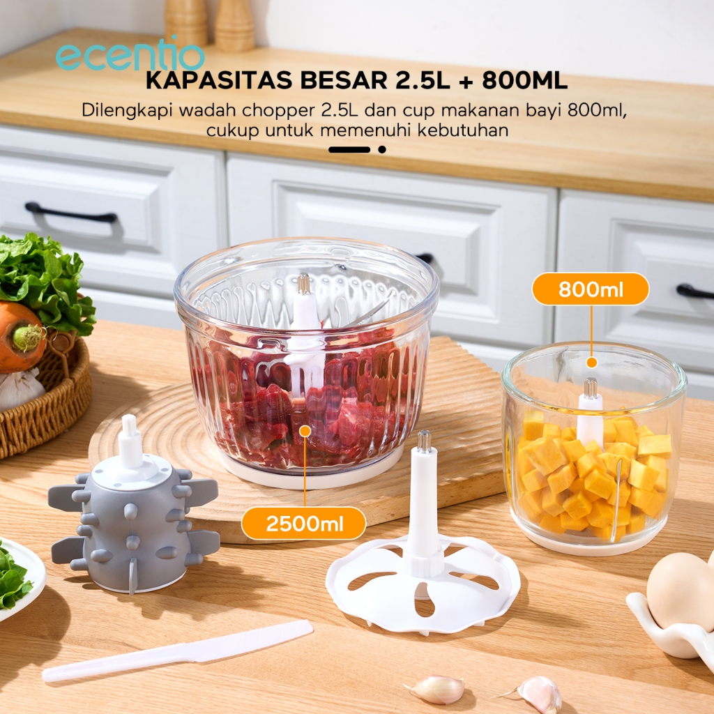 ecentio Penggiling Daging 5 IN 1 Food Chopper 2.5L 4 Mata Pisau 2 Speed Multifungsi Kaca Blender MPASI Kombo Cup Pengupas Bawang