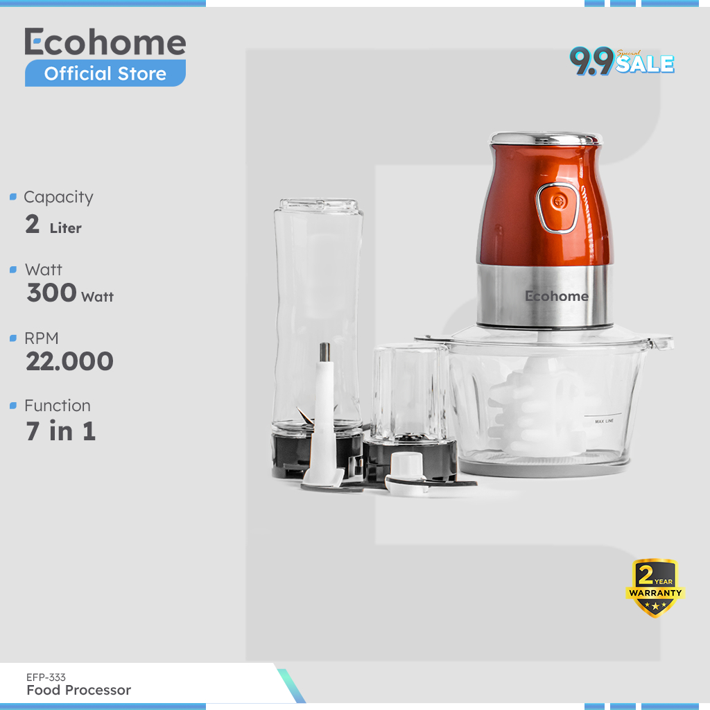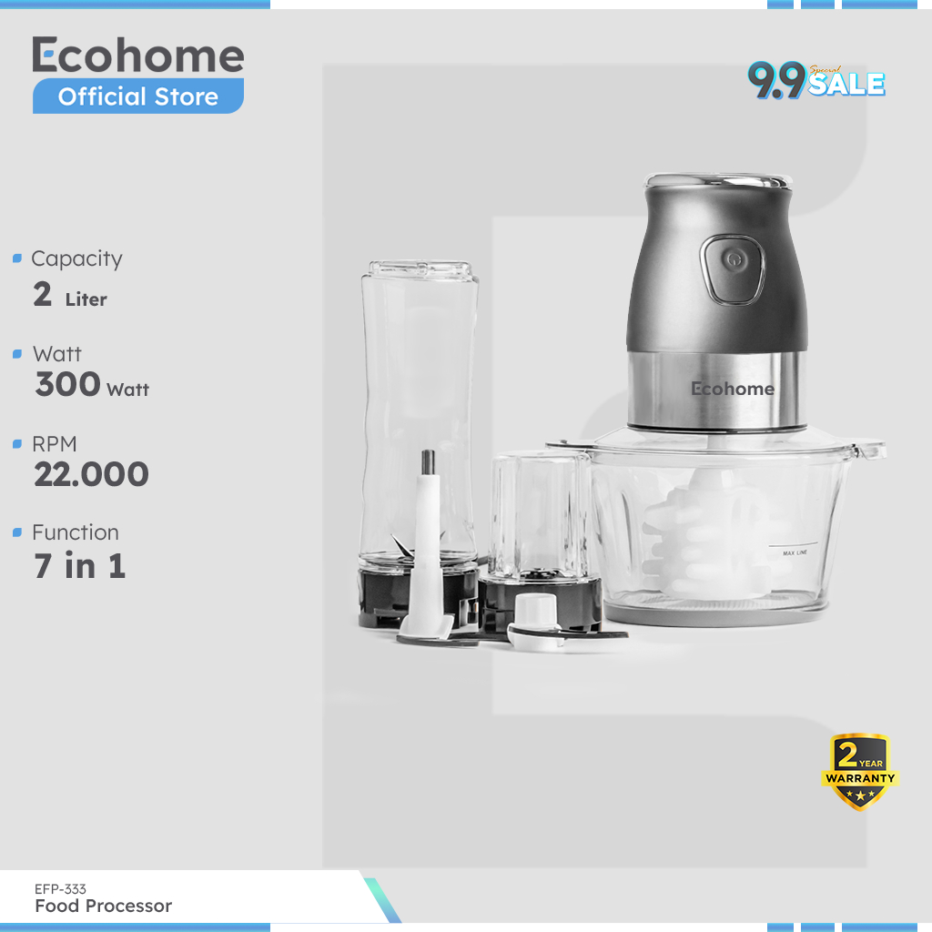 ECOHOME Food Processor 7 in 1 EFP333 Chopper Blender Smoothies and Garlic Peeler