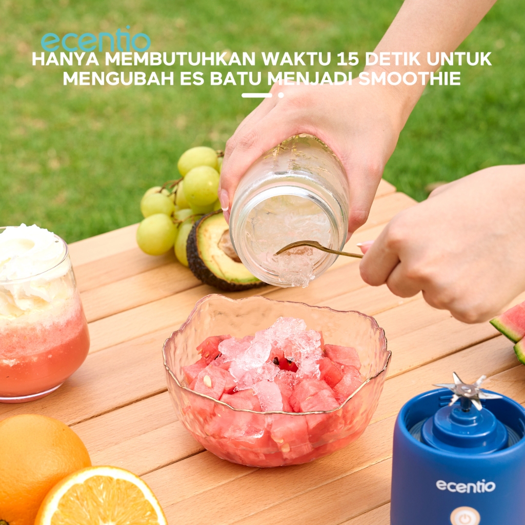ecentio Juicer Portable Mini Blender MPASI Portable 2 Kaca Gelas Food Grade Tahan Pecah 380ml+380ml 10 Pisau Stainless SNI Garansi 1 Tahun