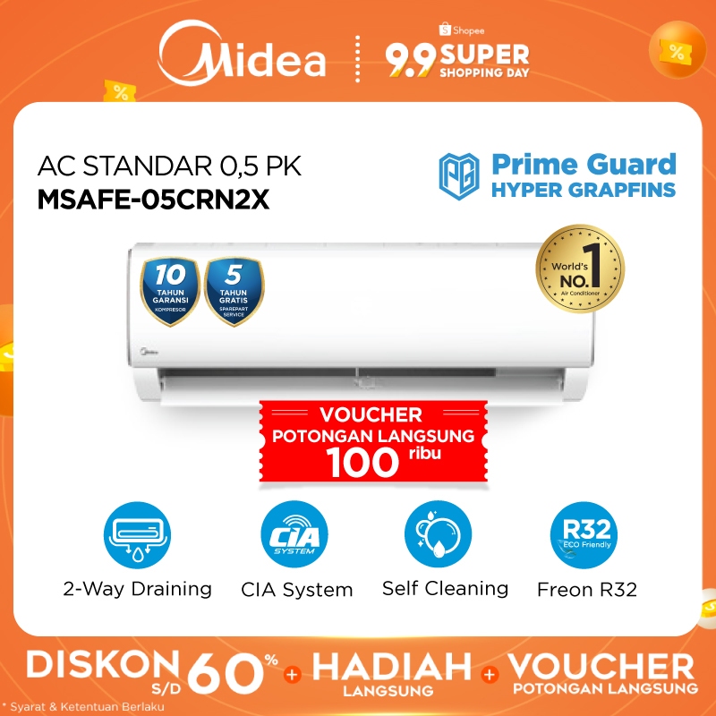 [TURUN HARGA] Midea AC Standard 1/2 PK ( 0.5 PK ) - Freon R32 Series MSAF/MSAFE-05CRN2X Self Cleaning Sleep Mode Cepat Dingin