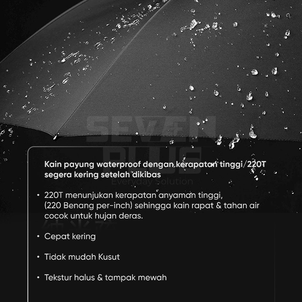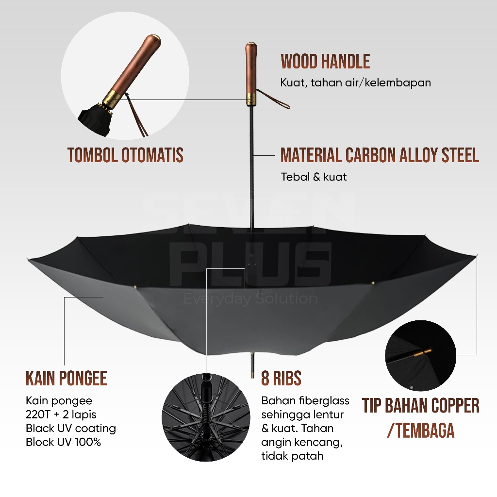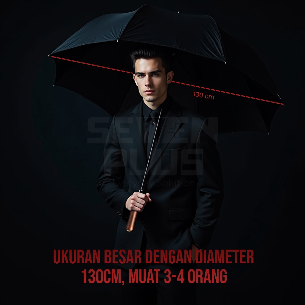 SevenPlus Payung Golf Premium Quality 220T Full UV Block Wood Handle - Ukuran Diameter Besar 130cm Muat 3-4 Orang Jumbo
