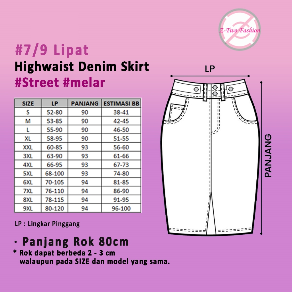 (Z-Two Fashion) Highwaist Rok Jeans Melar Panjang 7/9 Belah Depan Doubel Button Seventyn Skirt