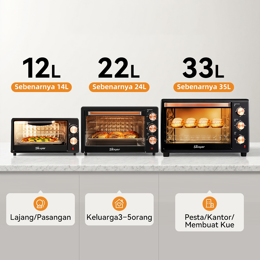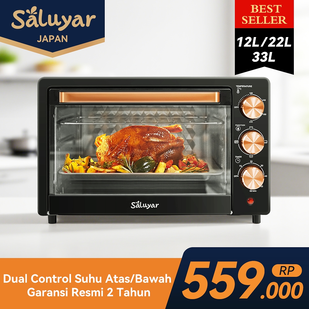 Saluyar Oven Listrik Jepang 12L/22L/33L – Panggang Roti, Ayam, Bebek, Multi Tray, Hemat Listrik | Pilih Kapasitas Sesuai Keluarga