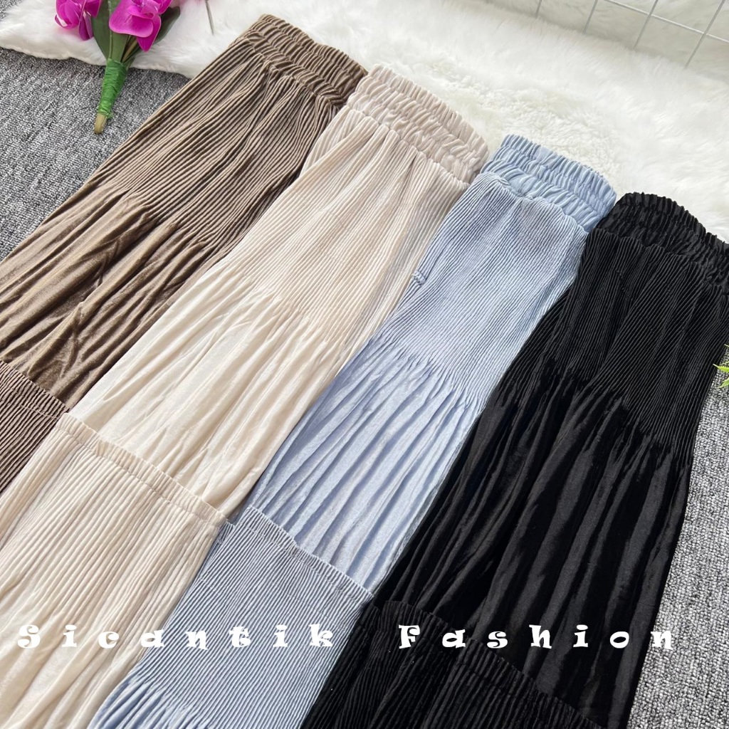 Rok Bludru Ruffle Plisket Premium Import - Rok Panjang 92cm