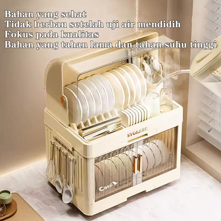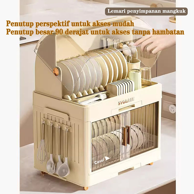 Cassi lemari piring transparan Susun 1 2 4 Transparent Plastik Tertutup Rak Pengering Piring Lipat Estetik kekinian