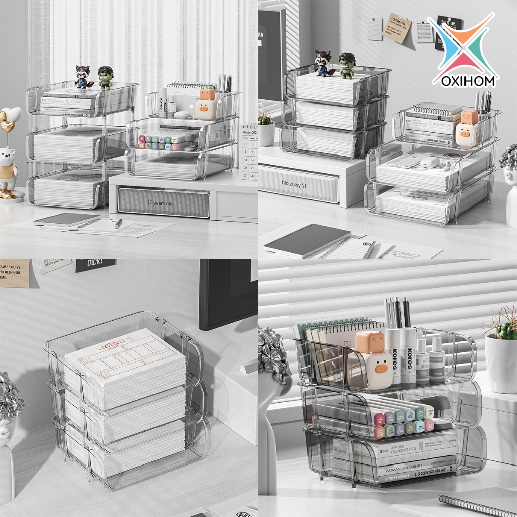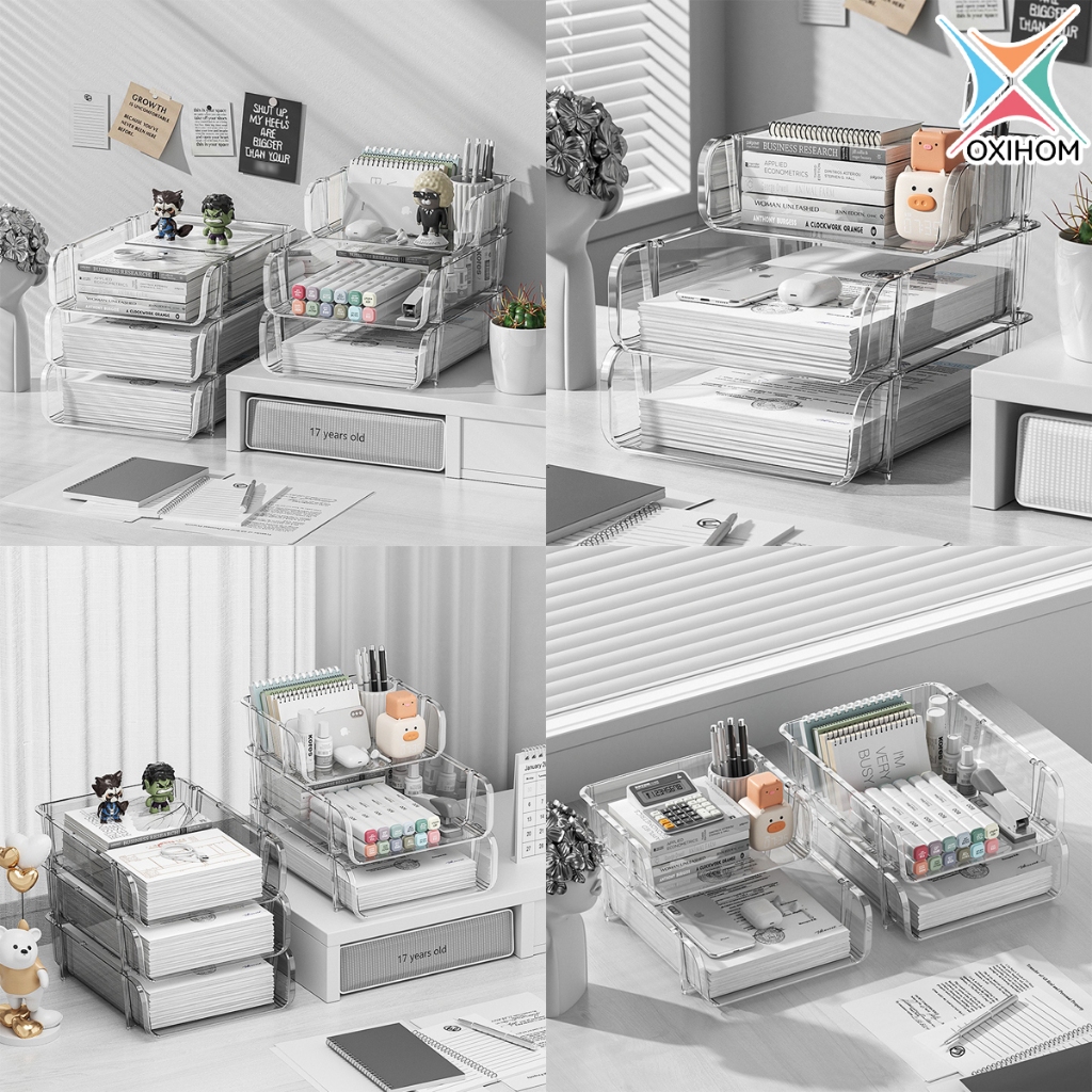 Oxihom Rak Dokumen Rak Kertas Stationary Rak Susun Rak Meja Stackable