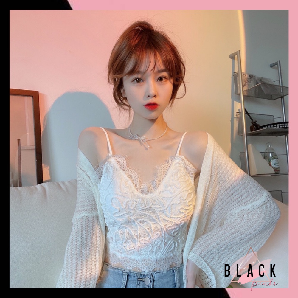 Blackpink Bra BH Tanktop Crop Korean Lace Vintage Wanita Motif Bunga Retro Gaya Korea 1107