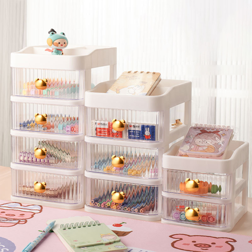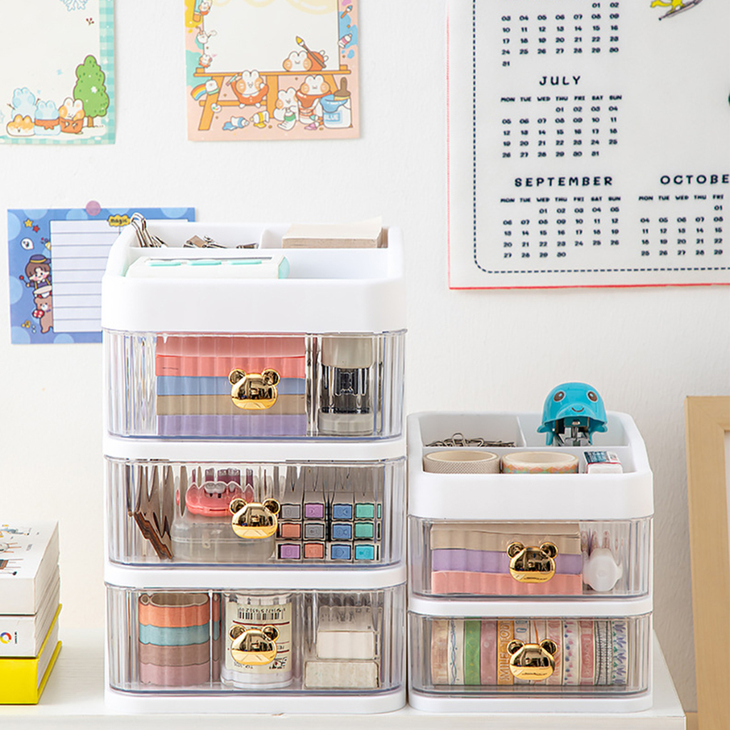 Tempat Make Up Storage Box Bear 3 Laci Serbaguna / Rak Susun Kosmetik Multifungsi Rak Kotak Penyimpanan Alat Tulis / Rak Meja Desktop Drawer Barakah Damai K166