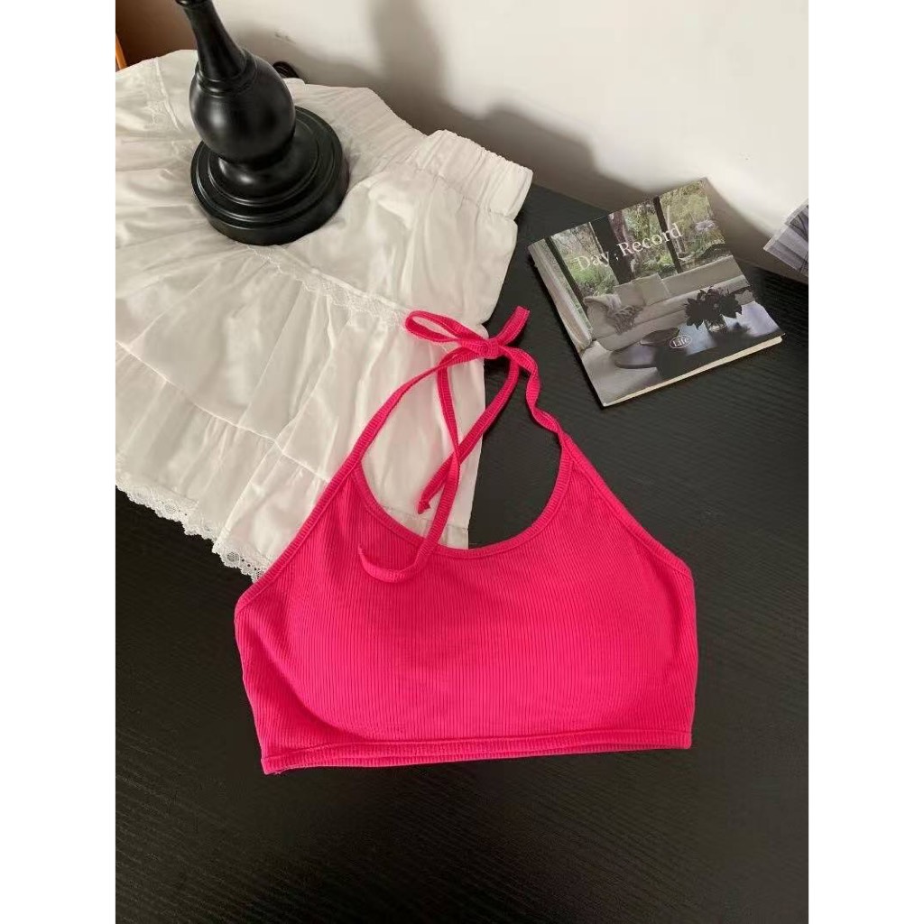 Miss Tank Top Halter Wanita Sexy Baru dengan Bra Pad, Gaya Liburan Manis & Seksi, Atasan Dalaman