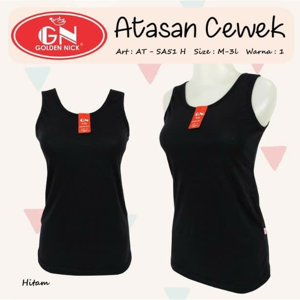 1 Pcs Tanktop Golden Nick - Tengtop Kaos Dalam Wanita - Tali Kecil dan Lebar - Warna Hitam