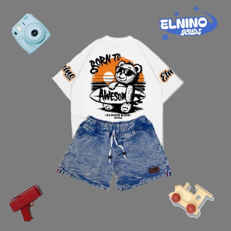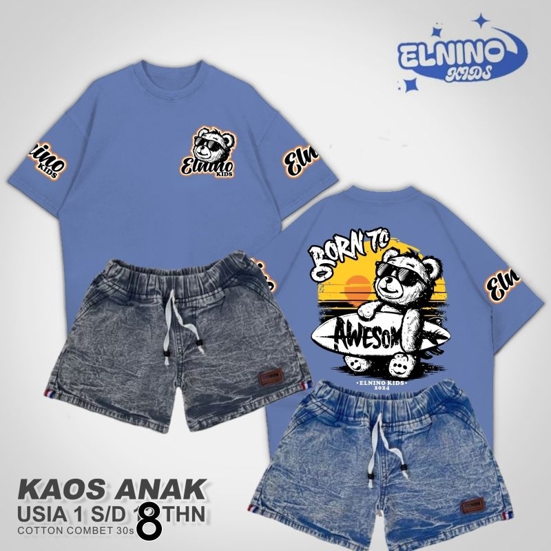 Setelan Jeans Anak Usia 1-8 Tahun Laki-laki dan Perempuan Motif Awesome