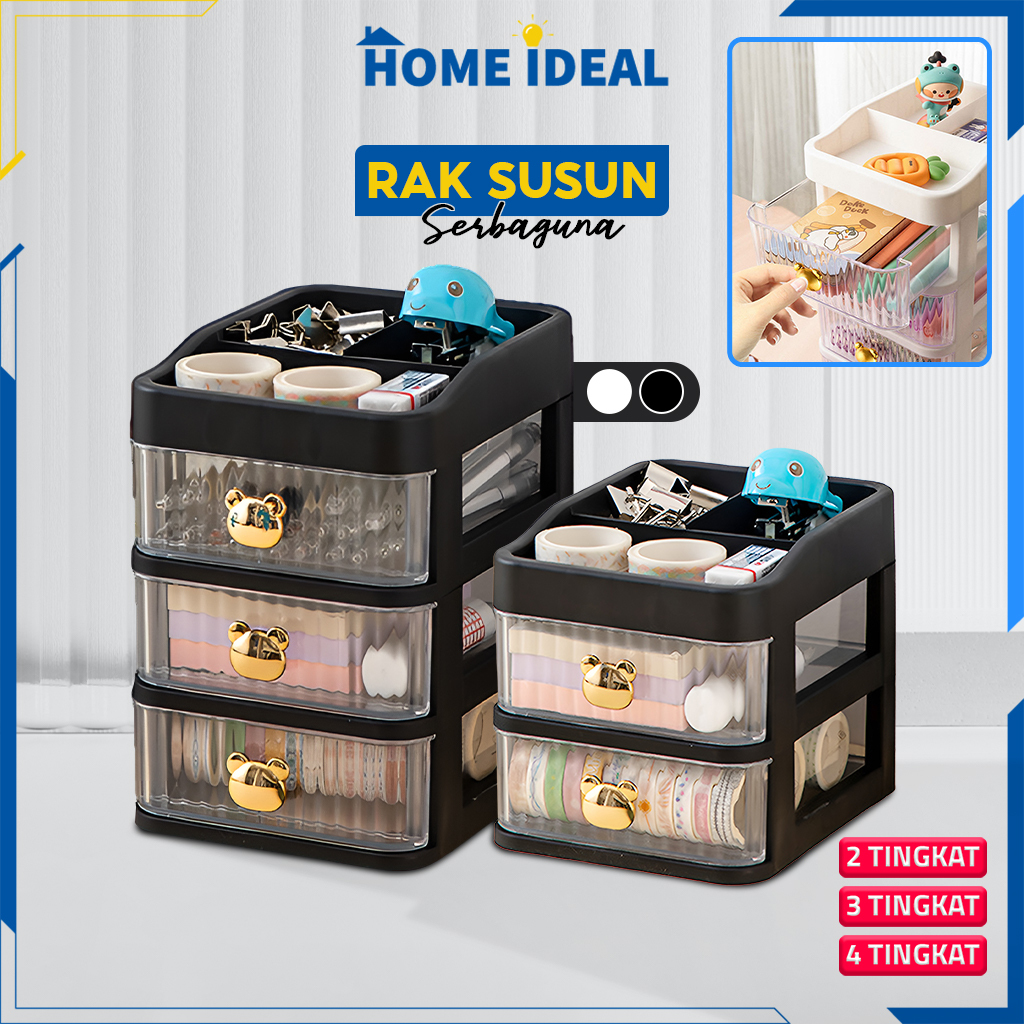 Rak Kosmetik Serbaguna 3 Laci Rak Meja Desktop Drawer / Rak Susun Multifungsi Rak Kotak Penyimpanan Alat Tulis / Tempat Make Up Storage Box Bear HI K166