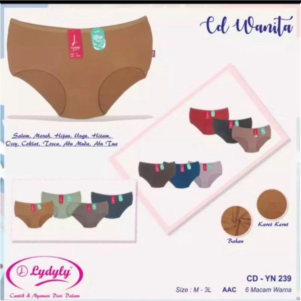 LYDYLY (12PCS) CELANA DALAM WANITA TIPE ART YN - 239 SOFT ORIGINAL /KOLOR CEWEK WANITA VAYA SOFT