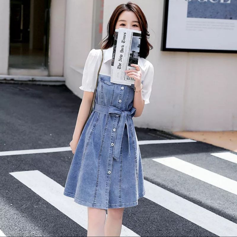DRESS JEANS WANITA KOMBINASI KATUN