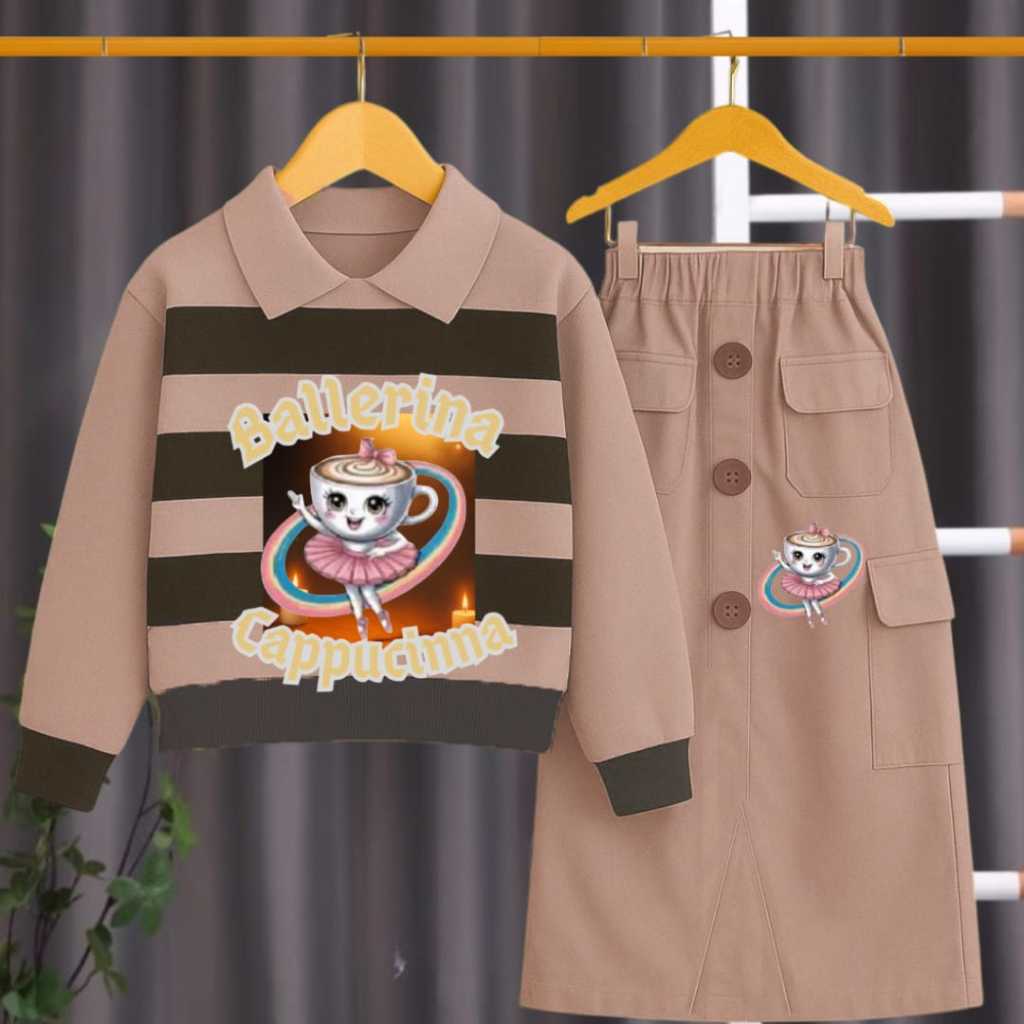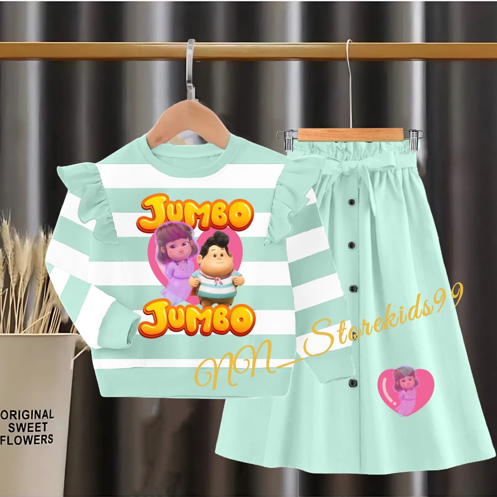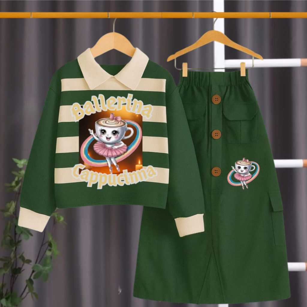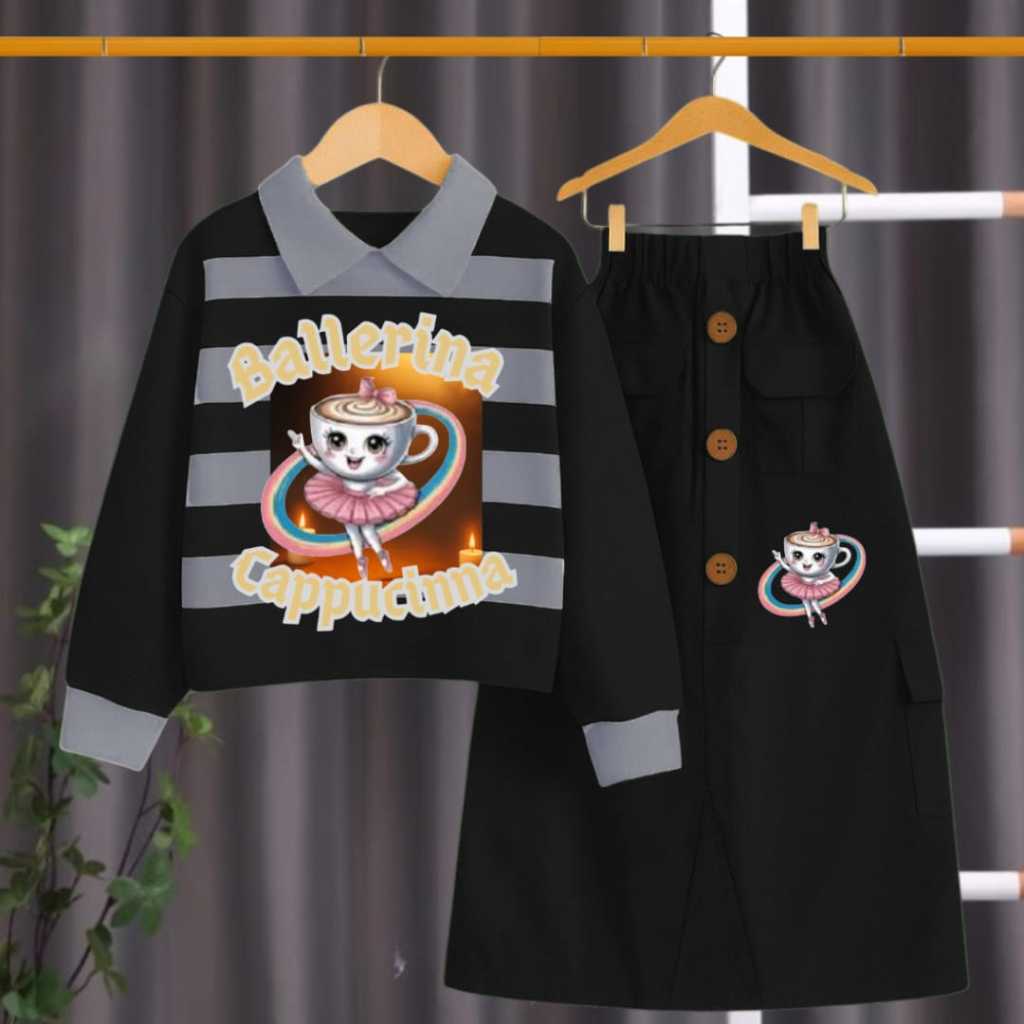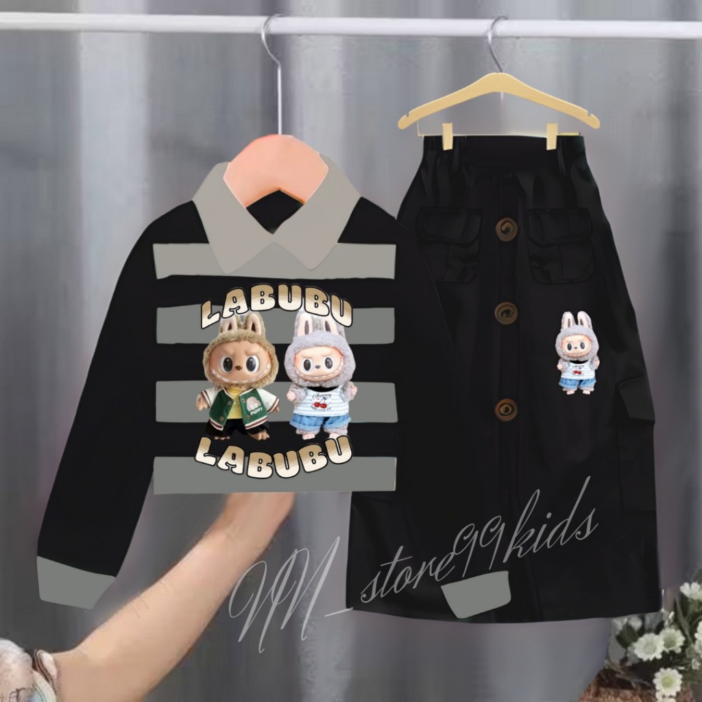 SETELAN ROK KARGO ANAK PEREMPUAN SALUR LABUBU/ BAJU ANAK SALUR KERAH LABUBU 2-12 TAHUN