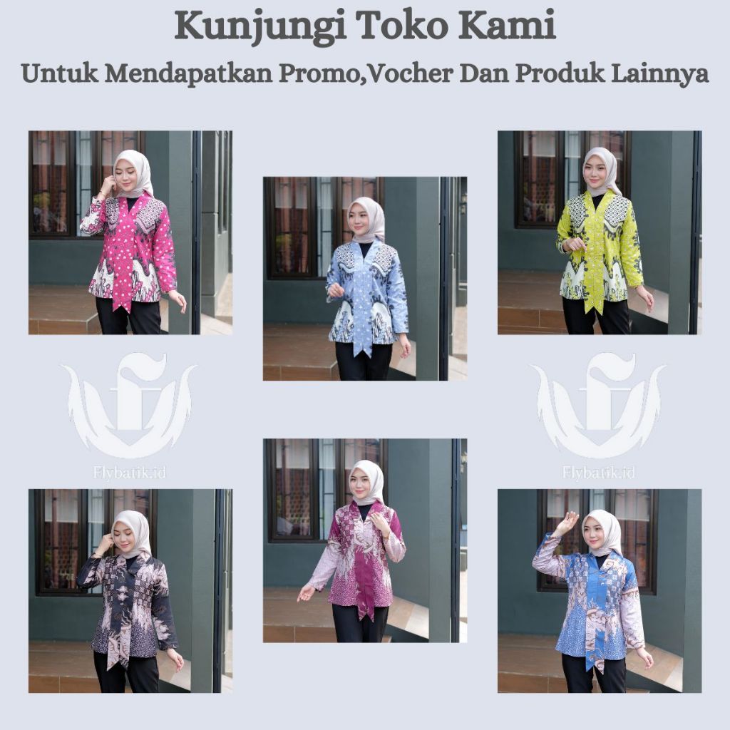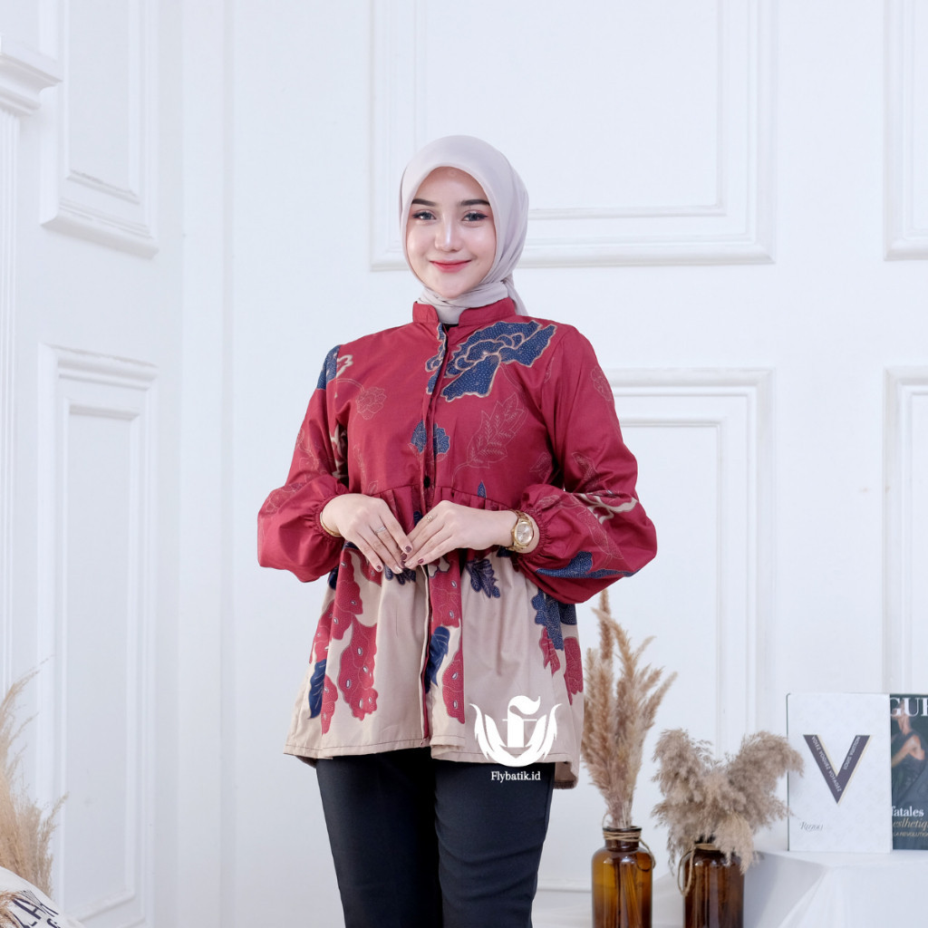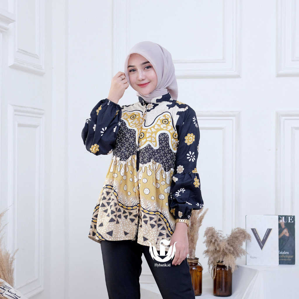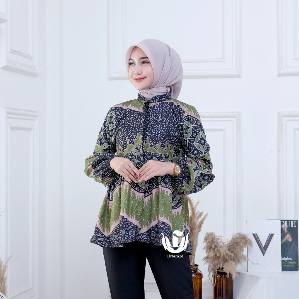 Flybatik.id Atasan Baju Blouse Batik Wanita Jumbo Modern Kerja Lengan Balon M L XL XXL