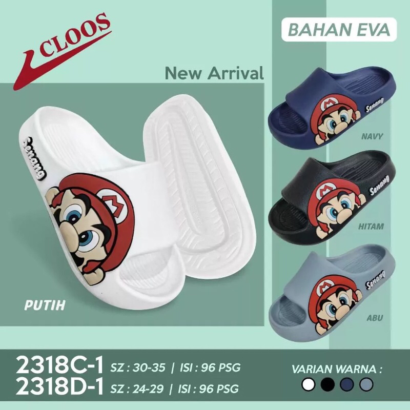 Sandal selop anak laki-laki karater mario anti licin cowok kekinian 2318B/C