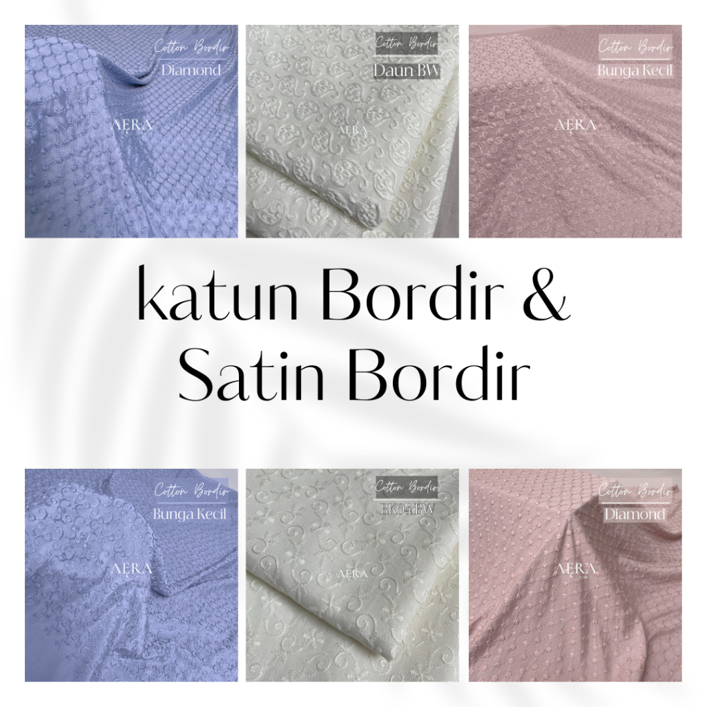 Kain Katun Bordir 0.5 meter - Embroidery Satin Premium untuk Kebaya & Dress Elegant Motif Bunga Teksture Halus