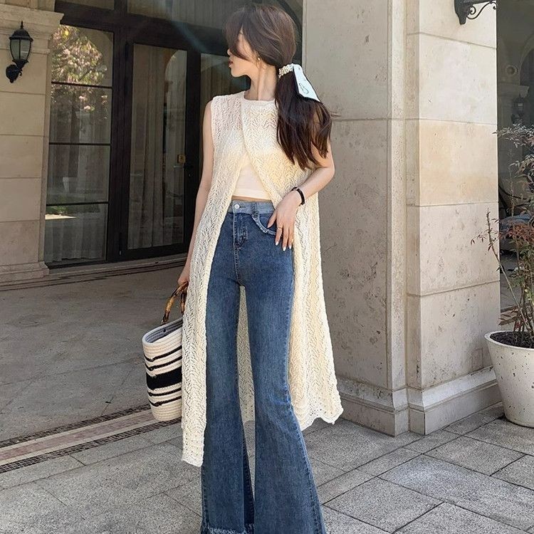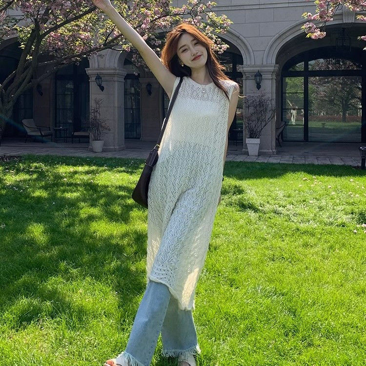 Desain Gaun Rompi Rajutan Blus Berlapis Khusus Dengan Rok Panjang Belahan Belakang Rok Yang Chic