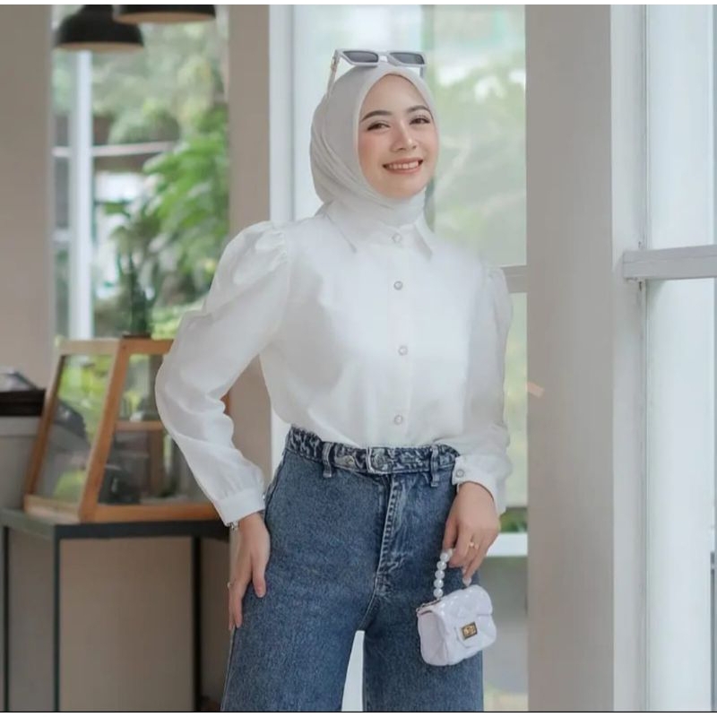 Bella Kemeja Puffy Blouse Atasan Wanita Panjang Soft Katun