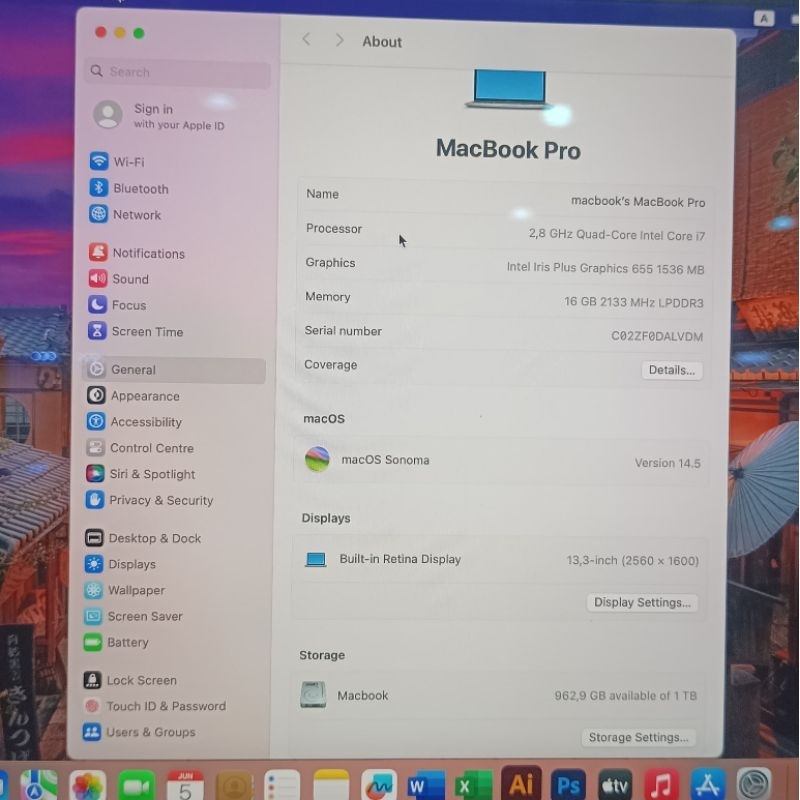 Macbook Pro 2019 13" Quad Core i7 16/512GB Touchbar Retina