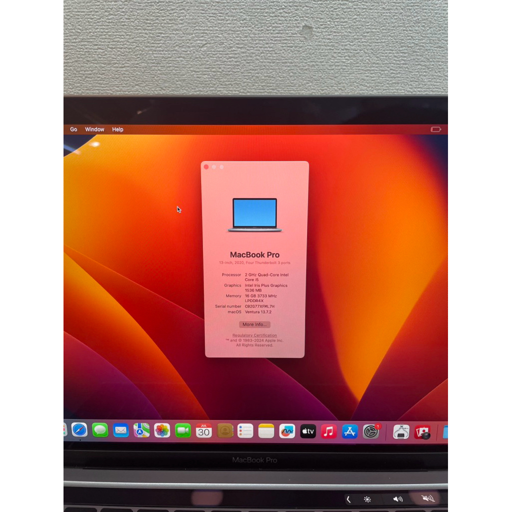Macbook pro retina 2020 13 inch Ram 16gb ssd 512gb core i5 (Touchbar) mulus second ber
