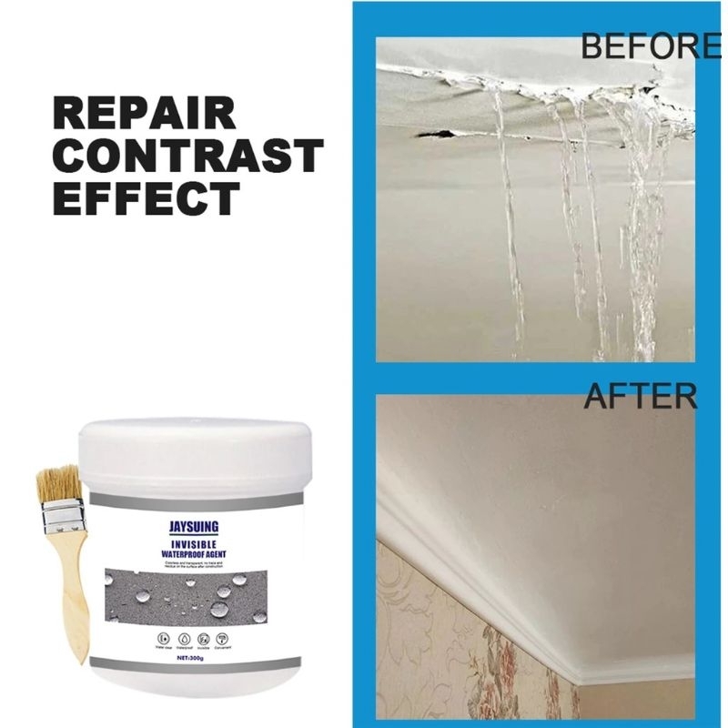 Lem Transparan Jaysuing 300Gram + Kuas Cat Anti Bocor Invisible Waterproof Agent Keramik Kamar Mandi Kolam Dll Serba Gun