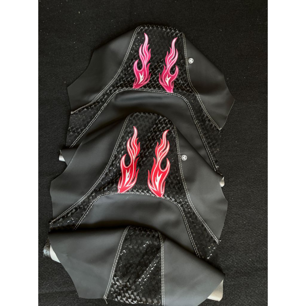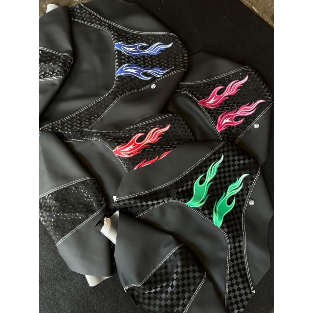 kulit jok/sarung jok motif api tenggah jaitan tenggah karbon 4D x skin dragon premium beat vario scopy beat model terba
